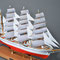 航海訓練所所属の練習船。全長110m、巾13.8m。総トン数2,570t。模型は左舷後方からの風を受けて帆走する状態を示している。具体的には①ヤードはトリムがつけてある。②ジブは風により浮き上がっている。③後方からの風で船首が風上に向かう力を受けるので、これを打ち消すために当て舵を取っている。