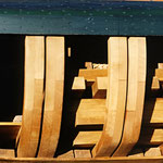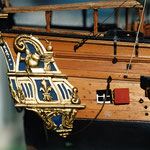臼砲の衝撃を支える木組みや砲弾ラック(置き場)など、船内のボム・ケッチ独特の構造が面白いので、ポートサイド(船体左側)はフレームを一部切り取り、内部が見えるようにした。