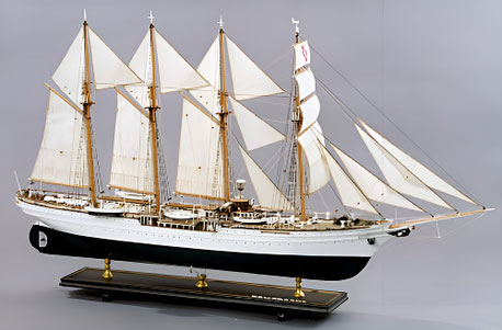 「太平洋の白鳥」と称えられた本船も、第2次大戦中は帆装を外し灰色に塗られて石炭輸送に従事するなど辛酸をなめた。現在は横浜の乾ドックで大切に保存·展示され幸せな余生を送っている。模型は新造時の再現を目標とした。さすがに資料も豊富であつたが、細部の不明な点は展示中の実船に20回も通って参考にした。製作時間2800時間。さすがに疲れたというのが本音。